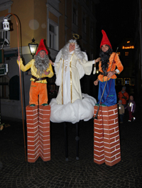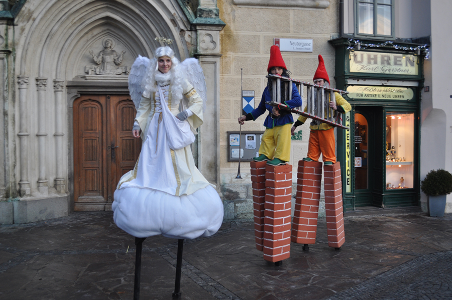 Ein leises Klingeln, ein zarter Ton, eine Ahnung inspiriert das Publikum. Über ihren Köpfen erscheint das Christkind, friedlich auf einer Wolke, begleitet von 2 Wichteln aus der Weihnachtswerkstatt.